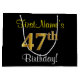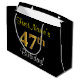 Grand Sac Cadeau Elégant, Noir, Faux Or 47ème Anniversaire + Nom