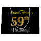 Grand Sac Cadeau Elégant, Noir, Faux Or 59ème Anniversaire + Nom