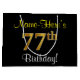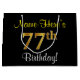 Grand Sac Cadeau Elégant, Noir, Faux Or 77ème Anniversaire + Nom