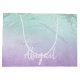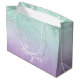 Ce joli sac de shopping en papier personnalisé présente une texture en marbre couleur vert faux menthe, une texture violette et une police calligraphie élégante. Personnalisez le produit avec votre nom ou tout autre texte.
