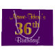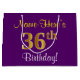 Grand Sac Cadeau Elégant, pourpre, Faux Gold 36ème anniversaire + N