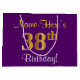 Grand Sac Cadeau Elégant, pourpre, Faux Gold 38ème anniversaire + N