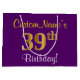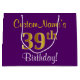 Grand Sac Cadeau Elégant, pourpre, Faux Gold 39e anniversaire + Nom