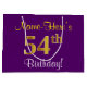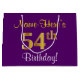 Grand Sac Cadeau Elégant, pourpre, Faux Gold 54e anniversaire + Nom