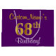 Grand Sac Cadeau Elégant, pourpre, Faux Gold 68e anniversaire + Nom