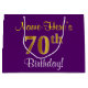 Grand Sac Cadeau Elégant, pourpre, Faux Gold 70e anniversaire + Nom