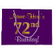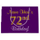 Grand Sac Cadeau Elégant, pourpre, Faux Gold 72e anniversaire + Nom