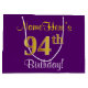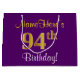 Grand Sac Cadeau Elégant, pourpre, Faux Gold 94ème anniversaire + N