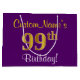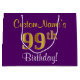 Grand Sac Cadeau Elégant, pourpre, Faux Gold 99e anniversaire + Nom