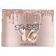 Adorable doux 16 et or rose gouttes sur arrière - plan or rose. N'importe quelle fille aimerait que son nom soit personnalisé sur ce design élégant.