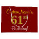 Grand Sac Cadeau Élégant, Rouge, Doré Faux 61e Anniversaire; Nom Pe
