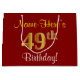 Grand Sac Cadeau Elégant, Rouge, Faux Gold 49e anniversaire; Nom pe