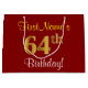 Grand Sac Cadeau Elégant, Rouge, Faux Gold 64e anniversaire; Nom pe