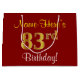 Grand Sac Cadeau Elégant, Rouge, Faux Gold 83e anniversaire; Nom pe