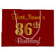Grand Sac Cadeau Elégant, Rouge, Faux Gold 86e anniversaire; Nom pe