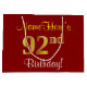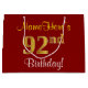 Grand Sac Cadeau Elégant, Rouge, Faux Gold 92e anniversaire; Nom pe