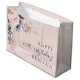 Sac cadeau d'anniversaire rose floral que vous pouvez facilement customiser avec vos détails en cliquant sur le bouton "Personnaliser". Caractéristiques typographie populaire moderne avec texte en bleu marine TIP : Produits correspondants disponibles pour votre commodité