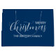 Élégant, simple, propre, Sac cadeau de Noël bleu nuit avec blanc manuscrit personnalisé texte élégant. Le bleu nuit, qui rappelle le ciel d'hiver la nuit, est la couleur parfaite pour Noël.