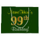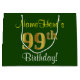 Grand Sac Cadeau Elégant, Vert, Faux Gold 99e anniversaire + Nom