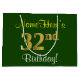Grand Sac Cadeau Elégant, Vert, Faux Or 32ème Anniversaire + Nom