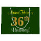Grand Sac Cadeau Elégant, Vert, Faux Or 36ème anniversaire + Nom