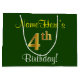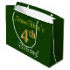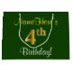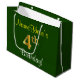 Grand Sac Cadeau Elégant, Vert, Faux Or 4ème Anniversaire + Nom