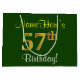 Grand Sac Cadeau Elégant, Vert, Faux Or 57ème Anniversaire + Nom