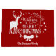 Typographie unique et élégante "Wish You A MERRY CHRISTMAS" avec cerf, arc, flocons de neige et ornements, sur un arrière - plan rouge. Outil de Personnaliser pour ajouter votre nom. Pour en savoir plus, visitez la collection de citations de Noël .