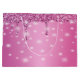 Grand Sac Cadeau Élégante Goutte de Paillettes Rose Chaud