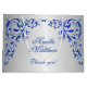 © 2019 Socialite Designs Inc. Belles tourbillons et des sacs-cadeaux fleuris aux couleurs bleu royal et gris argent.