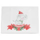 Ce joli design d'éléphant blanc présente un éléphant aquarelle portant un chapeau de Père Noël. Un nom peut être ajouté en blanc sur une bannière de ruban rouge. Les côtés ont un saint motif coordinateur.