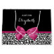 Un sac cadeau grand format empreinte de léopard noir et blanc à la mode avec un ruban rose foncé et vivace attaché à un joli arc de cercle. Personnalisez ce motif animal chic et élégant en ajoutant le nom de votre ado. Impression plane, pas ruban réel.