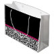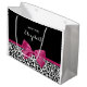 Grand Sac Cadeau Empreinte de léopard en ruban rose foncé avec nom