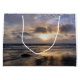 Un design photographique d'un coucher de soleil de rêve sur la mer et réfléchi dans l'eau sur la plage. Pays de Galles.