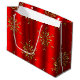 Grand Sac Cadeau Étoiles de flocon d'or à Noël rouge