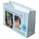 Sac cadeau pour un anniversaire spécial. Âge de l'échantillon : 30e anniversaire. Ajoutez un nom, la date, l'âge et deux photos. Bleu et noir. Vous êtes toujours extraordinaires.