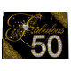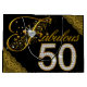 Fabuleux sac cadeau de 50 avec élégantes lettres et chiffres or et diamant sur un bel arrière - plan de dentelle noir et or.
