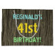Ce modèle de sac cadeau d’anniversaire amusant comporte un message comme "41e anniversaire de REGINALD!", où le nom peut être personnalisé. L'arrière - plan présente un motif rustique, brun, imitation bois de grain. Le texte du message personnalisable est composé de couleurs comme le bleu, le jaune et le vert, et il a un aspect inspiré de celui du lettrage peint et recouvert de pochoirs. Un sac cadeau sur le thème de l'anniversaire comme celui-ci pourrait être une façon stupide d'envelopper un cadeau pour quelqu'un qui célèbre son quarante et unième anniversaire. [~Z0000319]