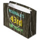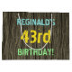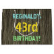 Ce modèle de sac cadeau d’anniversaire amusant comporte un message comme "43e anniversaire de REGINALD!", où le nom peut être personnalisé. L'arrière - plan présente un motif rustique, brun, imitation bois de grain. Le texte du message personnalisable est composé de couleurs comme le bleu, le jaune et le vert, et il a un aspect inspiré de celui du lettrage peint et recouvert de pochoirs. Un sac cadeau sur le thème de l'anniversaire comme celui-ci pourrait être une façon amusante d'envelopper un cadeau pour quelqu'un qui célèbre son quarante-troisième anniversaire. [~Z0000319]