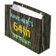 Ce modèle de sac cadeau d’anniversaire amusant comporte un message comme "NOM-HERE'S 64th BIRTHDAY!", où le nom peut être personnalisé. L'arrière - plan présente un motif rustique, brun, imitation bois de grain. Le texte du message personnalisable est composé de couleurs comme le bleu, le jaune et le vert, et il a un aspect inspiré de celui du lettrage peint et recouvert de pochoirs. Un sac cadeau sur le thème de l'anniversaire comme celui-ci pourrait être une façon amusante d'envelopper un cadeau pour quelqu'un qui célèbre son soixante-quatrième anniversaire. [~Z0000319]