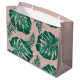 Grand Sac Cadeau Feuilles Pink & Green Palm sans couture Motif