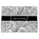 Motif monochrome feuille tropical artistique avec bande noire au milieu tenant un monogramme sans serif. Idéal pour des sacs cadeaux de classe et intéressants ou du matériel de promotion d'affaires
