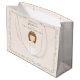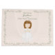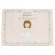 Communion Girl Prier Cette belle et douce première communion conception d'une petite brune priant paisiblement sur sa journée spéciale est sur une pêche pâle et arrière - plan sage. Accentué par un cadre feuille fleur sauvage. Chérissez les grands souvenirs de la première communion sainte de votre enfant avec ce magnifique design. Consultez les accessoires, la papeterie et les cadeaux de communion de la Première Sainte Communion correspondants.