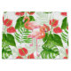 Aquarelle design motif avec des fleurs et des oiseaux flamands, la monstère et les feuilles de palmiers.