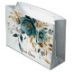 Grand Sac Cadeau Fleur blanche de turquoise de fête Feuilles dorées