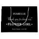 Grand Sac Cadeau Fleur personnalisée Fille noir Merci blanc