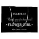 Sac cadeau FLOWER GIRL personnalisé avec palette de couleurs noir et blanc. Le nom modèle est configuré pour que vous puissiez ajouter le nom de la fille de fleurs ainsi que les noms de la mariée et du marié et la date du mariage. Le texte de remerciement dit "Merci d'être notre fille aux fleurs" dans un mélange d'écriture élégante et de typographie forte et audacieuse. Si vous préférez un autre arrière - plan de couleur, cliquez sur "personnaliser" pour entrer dans l'outil de conception et le modifier, ou n'hésitez pas à nous envoyer un message pour obtenir de l'aide. Parcourez notre magasin pour trouver des couleurs et des tailles alternatives.