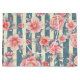 Grand sac cadeau avec une belle motif avec de jolies fleurs roses disposées sur un motif rayé composé de rayures bleues et crème.