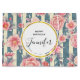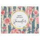 Grand sac cadeau avec une belle motif avec de jolies fleurs roses disposées sur un motif rayé composé de rayures bleues et crème. Un cadre en cercle blanc avec une fausse bordure en feuille d'or, superposé avec votre texte personnalisé à l'intérieur.