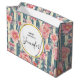 Grand Sac Cadeau Fleurs d'aquarelle rose sur rayures Anniversaire